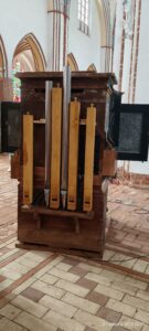 Jest to pięciogłosowy instrument, zastosowano w nim strój nierównomiernie temperowany. Współczesne instrumenty, np. kamieńskie organy Berigela, strojone są w systemie równomiernie temperowanym.